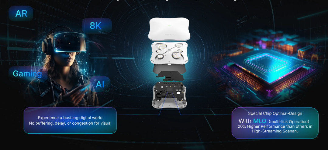 Hơn nữa, tính linh hoạt và độ tin cậy mà MLO mang lại đảm bảo trải nghiệm tối ưu nhất quán, phục vụ cho các ứng dụng đa dạng ngoài việc chỉ truyền phát video. Điều này làm cho RG-RAP73HD được trang bị MLO của Reyee trở thành lựa chọn lý tưởng cho những ai ưu tiên cả tốc độ và độ tin cậy trong kết nối mạng của mình.