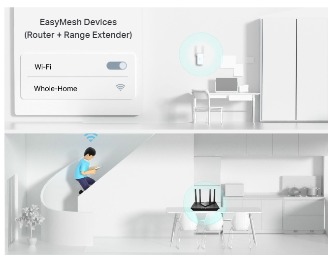 Nếu bạn có bất kỳ vùng chết nào ở nhà, chỉ cần thêm một thiết bị tương thích EasyMesh khác để tạo thành WiFi Mesh cho toàn bộ ngôi nhà của bạn. Không cần phải tìm kiếm kết nối ổn định nữa.◇