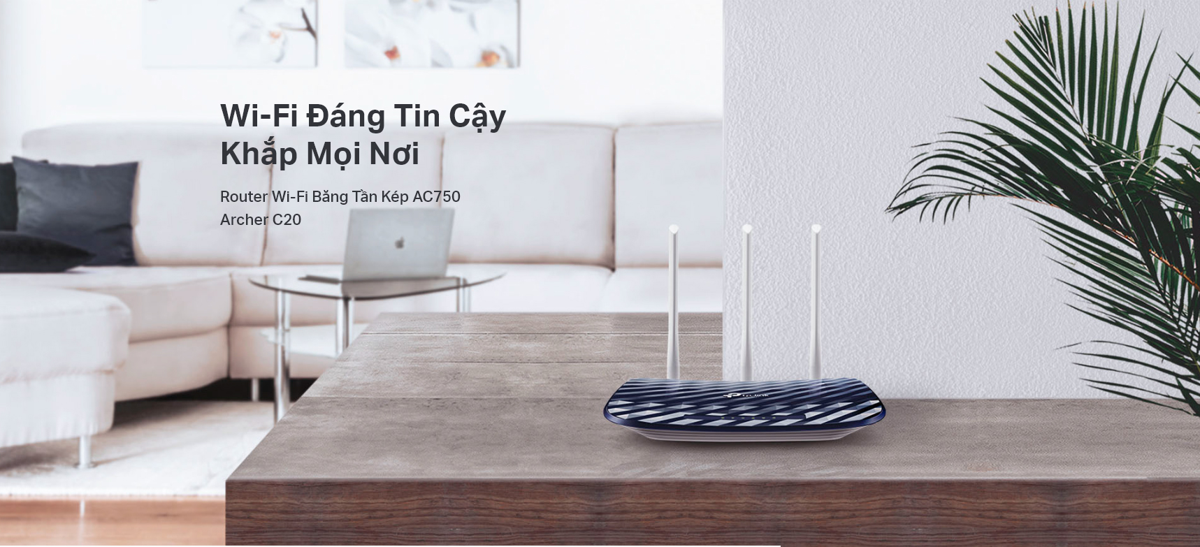Wi-Fi tốc độ 433 Mbps trên băng tần 5GHz và tốc độ 300 Mbps trên băng tần 2.4GHz, Archer C20 cung cấp sự linh hoạt của hai mạng chuyên dụng và đảm bảo hiệu suất Wi-Fi tuyệt vời. Các tác vụ đơn giản như gửi e-mail hoặc duyệt web có thể được xử lý bởi băng tần 2.4GHz trong khi các tác vụ tiêu tốn nhiều băng thông như chơi game online hoặc phát video HD có thể được xử lý bởi băng tần 5GHz đồng thời.