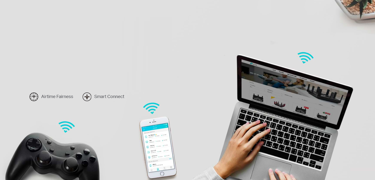 Kết nối thông minh giúp router tự động chuyển kết nối của mỗi thiết bị sang băng tần Wi-Fi khả dụng tốt nhất, Airtime Fairness ngăn các thiết bị cũ làm chậm mạng của bạn. Sự kết hợp hoạt động của hai tính năng này mang lại cho người dùng trải nghiệm Wi-Fi hoàn toàn mới, mượt mà hơn.