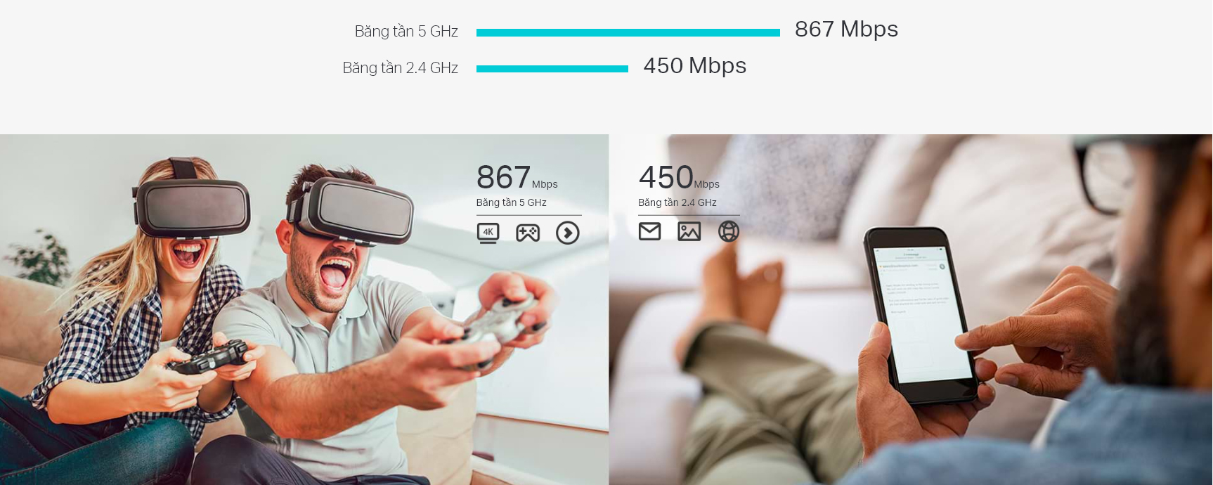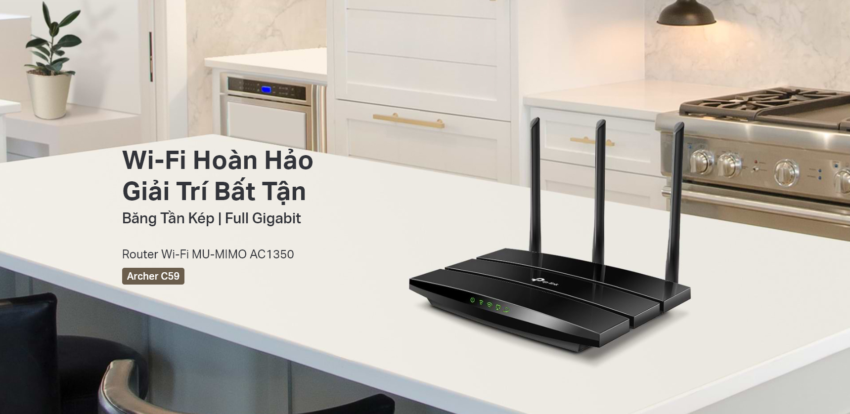 Archer C59 cung cấp Wi-Fi gia đình hiệu suất cao và giá cả phải chăng với tổng tốc độ lên đến 1350 Mbps. Xử lý các tác vụ đơn giản như gửi e-mail hoặc duyệt web trên băng tần 2.4 GHz và các tác vụ tiêu tốn nhiều băng thông như chơi game trực tuyến hoặc phát trực tuyến 4K/8K UHD trên băng tần 5 GHz — tất cả đều không có độ trễ.