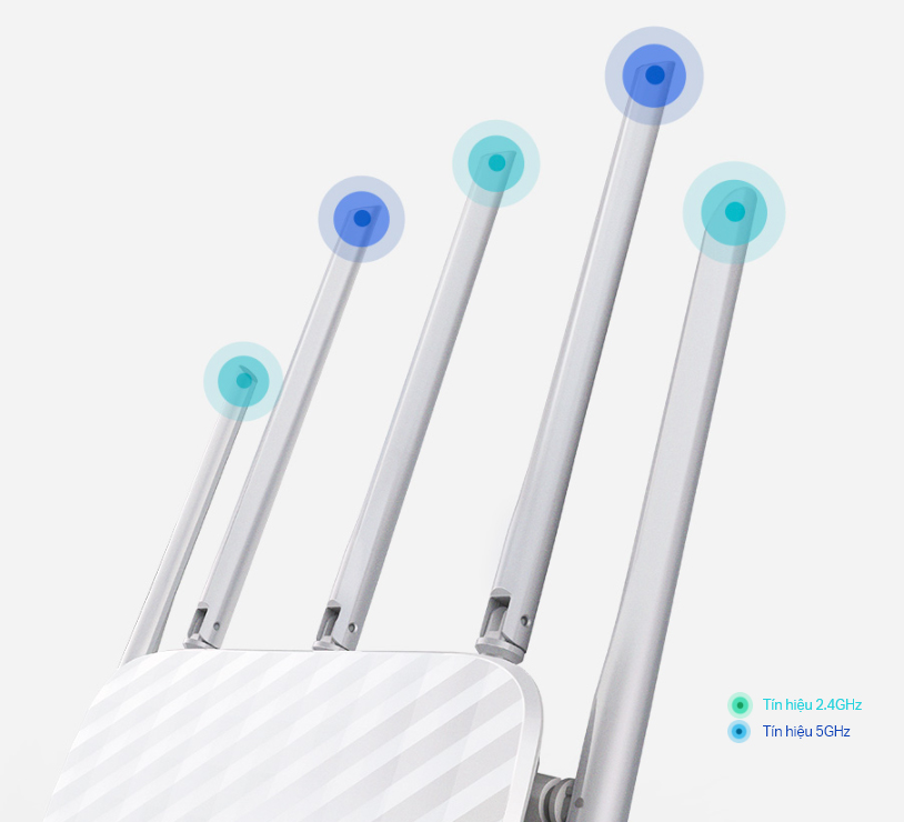 Thiết kế sáng tạo của Archer C60 với năm ăng ten, ba ăng ten băng tần 2.4GHz và hai ăng ten băng tần 5GHz, được sắp xếp xen kẽ nhằm tối ưu hóa hiệu suất của Wi-Fi băng tần kép 802.11ac. Với Archer C60, bạn sẽ có vùng phủ sóng Wi-Fi rộng hơn và giảm thiểu nhiễu xuống mức thấp nhất có thể.