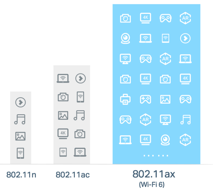 802.11ax (còn được gọi là Wi-Fi 6), chuẩn Wi-Fi hiệu suất cao thế hệ tiếp theo đã được tạo ra. Giờ đây, bạn có thể kết nối nhiều thiết bị cùng lúc hơn và thoải mái tận hưởng tốc độ tối ưu cho từng thiết bị.