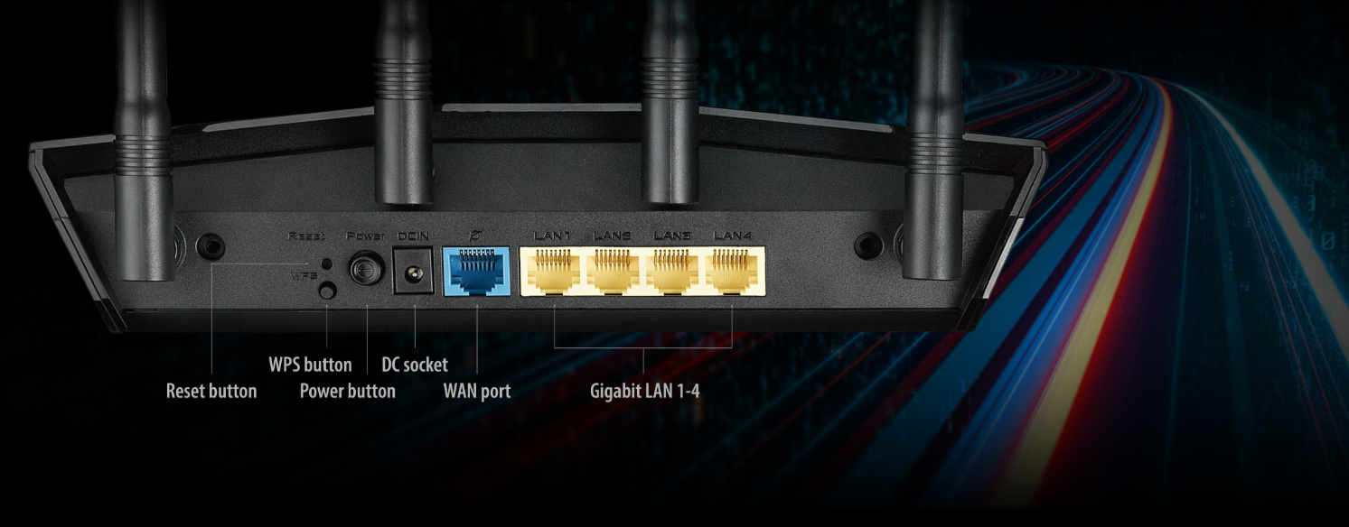 Router RT-AX1800HP có một cổng WAN Gigabit, 4 cổng LAN Gigabit. Smart TV, máy console, thiết bị lưu trữ NAS, Internet dự phòng, v.v.. giờ đây có thể có các cổng chuyên dụng riêng, biến router RT-AX1800HP trở thành trung tâm kỹ thuật số tại nhà vô cùng ổn định cho bạn.