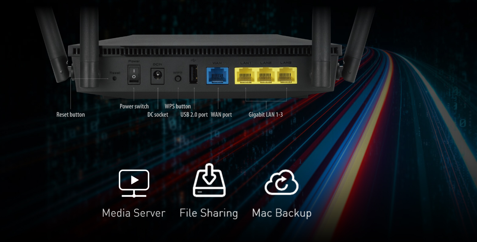 - Bảo vệ kết nối mạng gia đình của bạn – phần mềm Aiprotection được hợp tác với Trend Micro™, giúp chặn các mối đe dọa internet, bảo mật cho tất cả các thiết bị thông minh của bạn được kết nối với router.