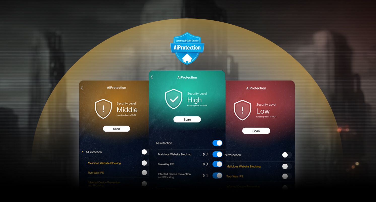 AiProtection Pro bảo vệ bộ router của bạn khỏi các mối đe dọa trực tuyến ngày càng gia tăng như phần mềm độc hại, vi-rút, xâm nhập và tấn công lừa đảo - chỉ với một chạm.