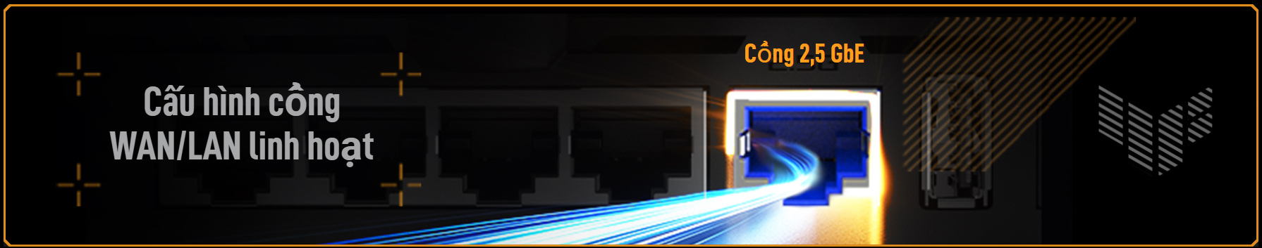 TUF Gaming BE3600 bao gồm một cổng WAN/LAN 2.5G cho giải trí tốc độ cao, phòng studio tại nhà và đường truyền backhaul Ethernet siêu nhanh