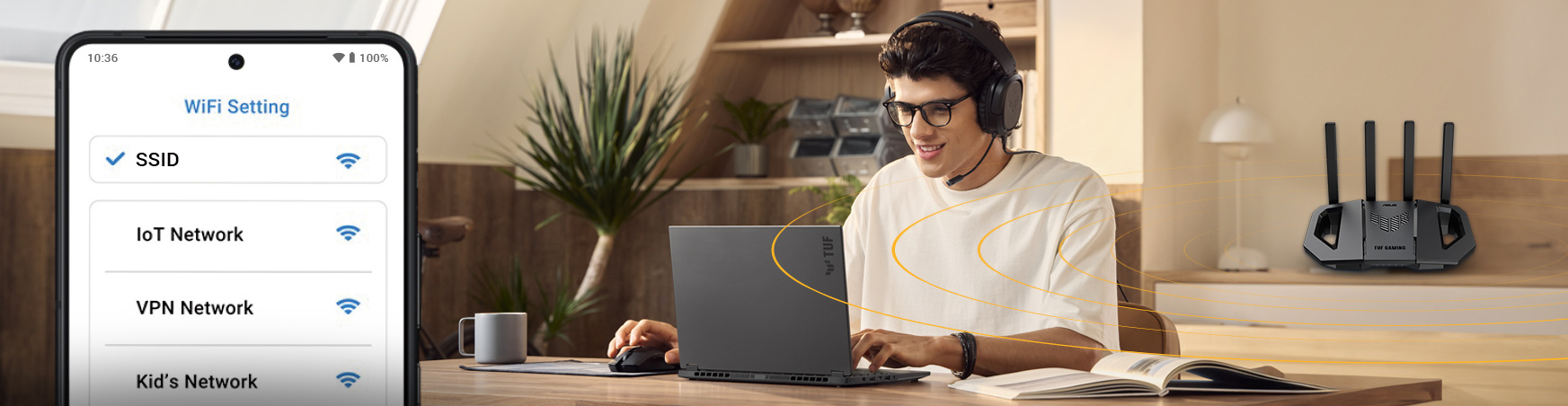 Công nghệ Đa Liên Kết (MLO)* cho phép kết nối không bị gián đoạn bằng cách kết hợp và chuyển đổi thông minh giữa băng tần 2,4 GHz và 5 GHz. TUF Gaming BE3600 được thiết kế để tương thích với tất cả các thiết bị WiFi 7, bất kể chế độ MLO sử dụng*.