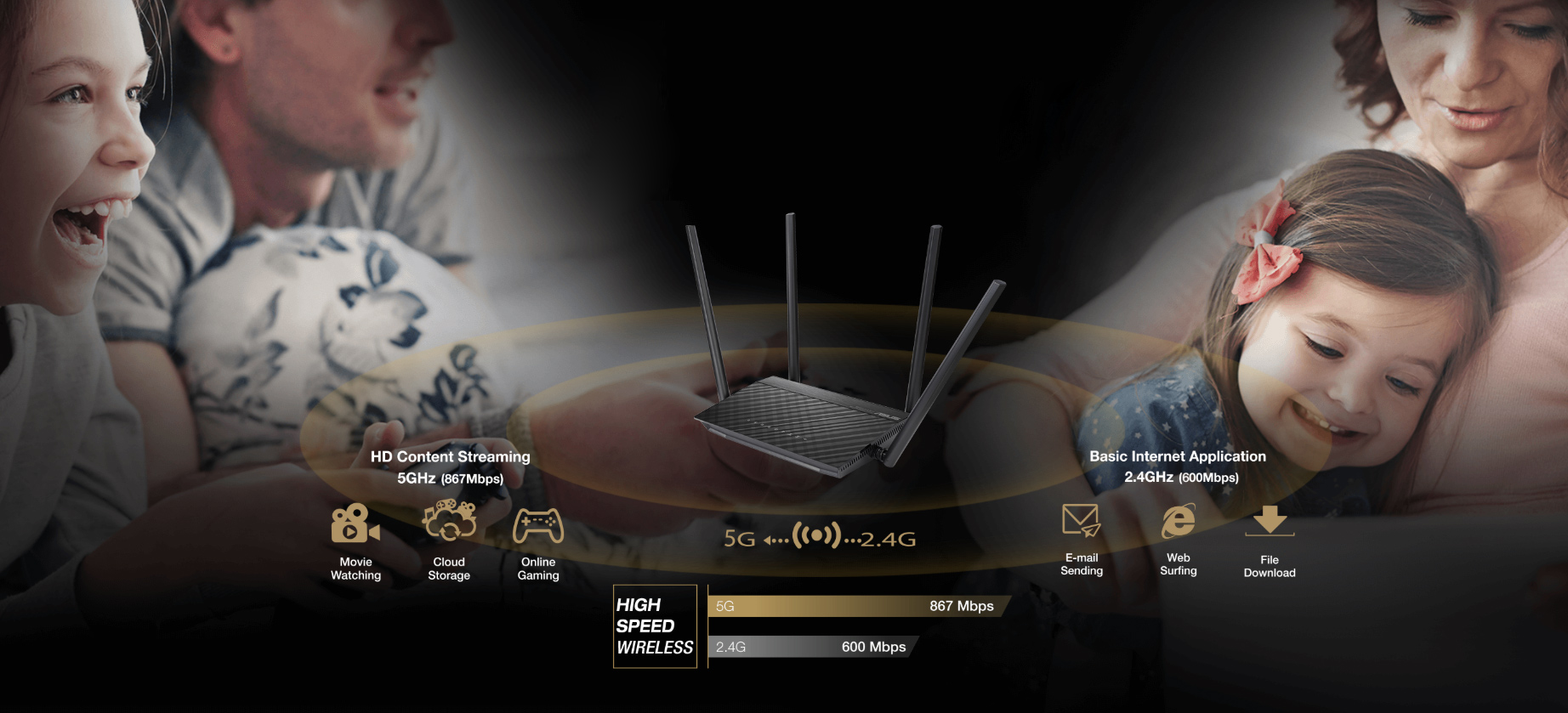 - 600 Mbps (2,4GHz) và 867 Mbps (5GHz) để đạt hiệu suất không dây nhanh.