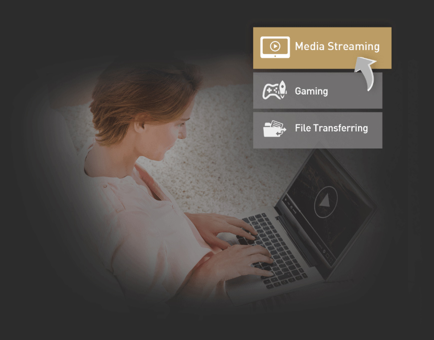 ASUS QoS đảm bảo băng tần vào và ra trên cả kết nối có dây và không dây để bạn có thể chọn chơi game trực tuyến và phát HD là ưu tiên cao nhất, khắc phục được mọi vấn đề về độ trễ.