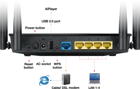 Điểm đáng lưu ý nữa trên Router wifi Asus RT-AC1200 v2 là khả năng mở rộng mạng. Ngoài được trang bị 2 dải băng tần kết nối Asus RT- AC1200 v2 còn được trang bị 4 cổng kết nối mạng LAN. Tăng khả năng mở rộng mạng đáng kể cho các thiết bị cần kết nối.