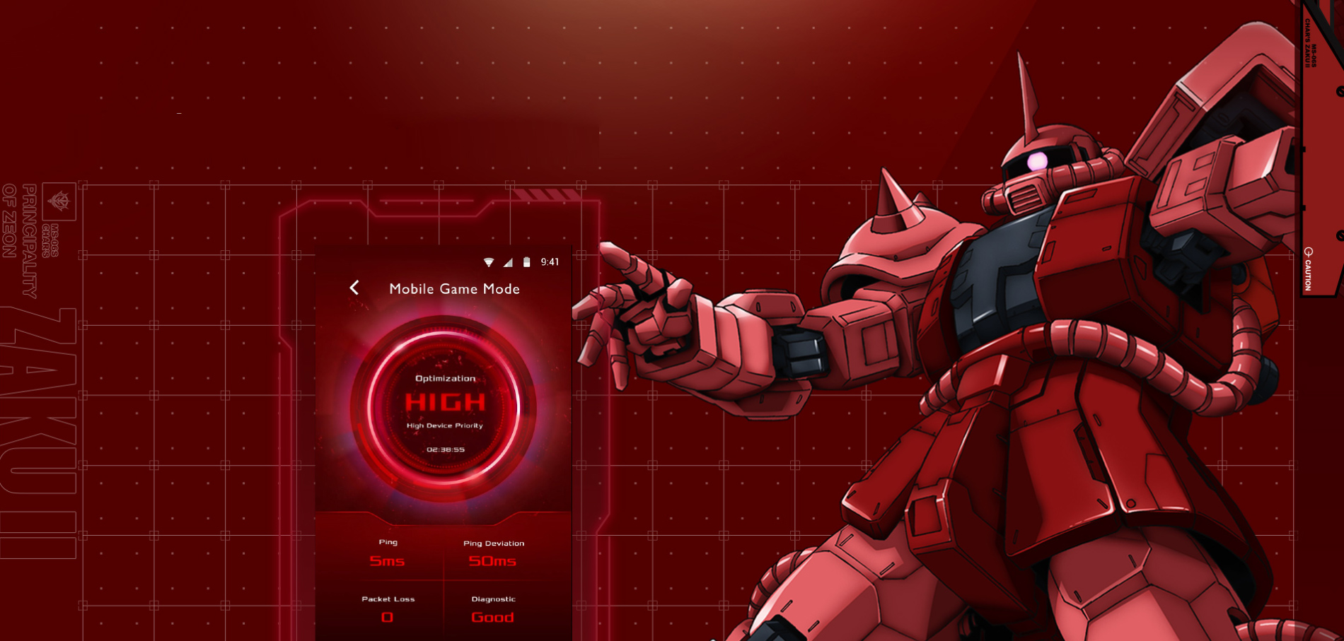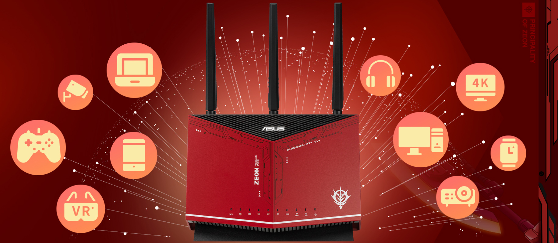 Được xây dựng theo các tiêu chuẩn khắt khe của Công quốc Zeon và được bao bọc bởi màu đỏ đậm của ZAKU II Char Aznable Custom, router WiFi 6 hai băng tần ASUS RT-AX86U ZAKU II Edition mang đến kết nối WiFi cấp độ mới, tối ưu cho đường truyền game. Cùng với tốc độ Wi-Fi cực nhanh lên đến 5700 Mbps*, RT-AX86U ZAKU II Edition trang bị các công nghệ tiên tiến mang lại lợi thế trong trận chiến, bao gồm cả chế độ Mobile Game cho trải nghiệm chơi game trên thiết bị di động không bị lag, độ trễ thấp.