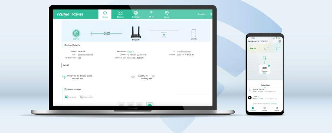 Thiết lập mạng gia đình của bạn bằng Ứng dụng Reyee Router trong hai phút. Nhiều chức năng Miễn phí Trọn đời hơn đang chờ bạn Khám phá, Trải nghiệm, Kì vọng.