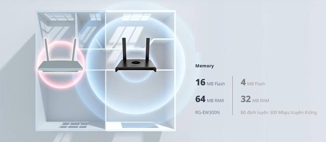 Ruijie RG-EW300N là bộ định tuyến thông minh 300 Mbps. Trong bộ định tuyến, Flash và RAM rất quan trọng để lưu trữ và xử lý dữ liệu, đảm bảo hiệu suất mạng mượt mà và hiệu quả.