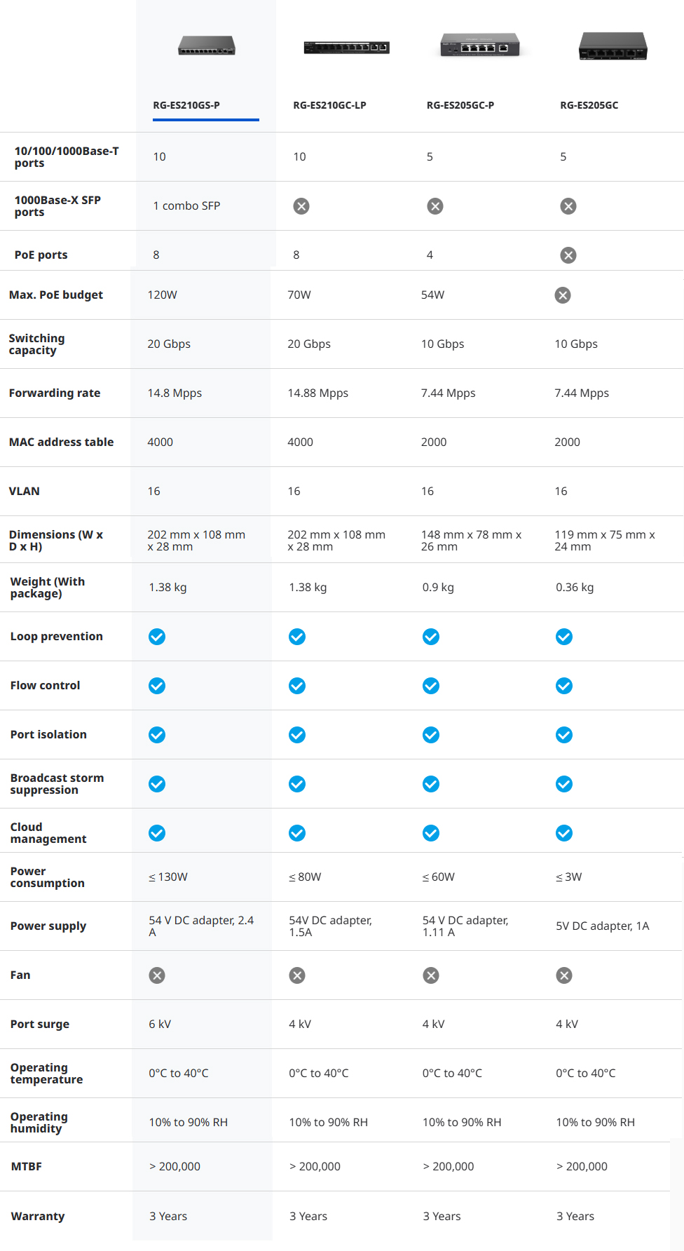 Switch Quản Lý PoE 10 cổng Reyee RG-ES210GS-P 10/100/1000BASE-T, công suất 120W, tốc độ 20Gbps, chống sét 6KV