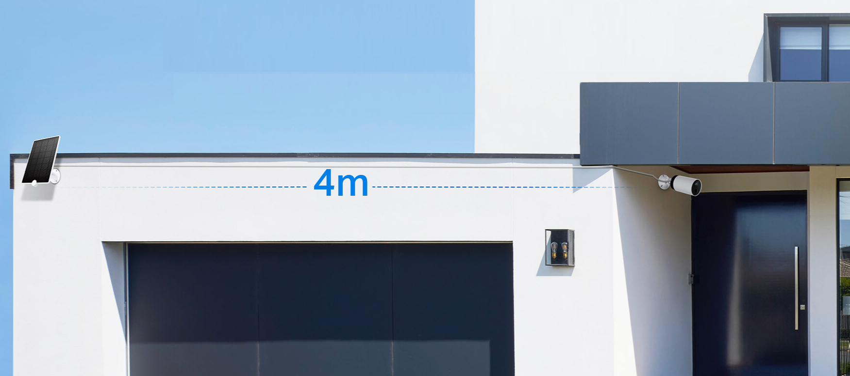 Không cần lo lắng về khoảng cách giới hạn của tấm pin mặt trời và camera. Chỉ cần tìm vị trí tốt nhất, lắp đặt tại đó,