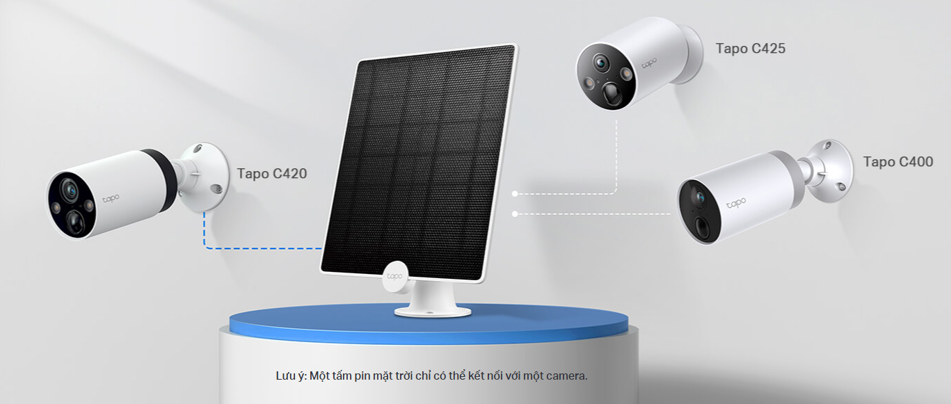 Tương thích với Tapo C425 v1.0/v1.20, Tapo C420 v1.0/1.20 và Tapo C400 v1.0, cho phép camera pin Tapo bảo vệ bạn quanh năm.