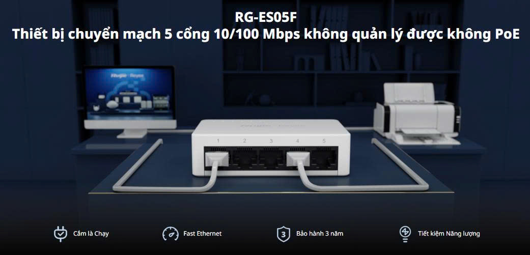RG-ES05F, Thiết bị chuyển mạch 5 cổng 10/100 Mbps không quản lý được không PoE