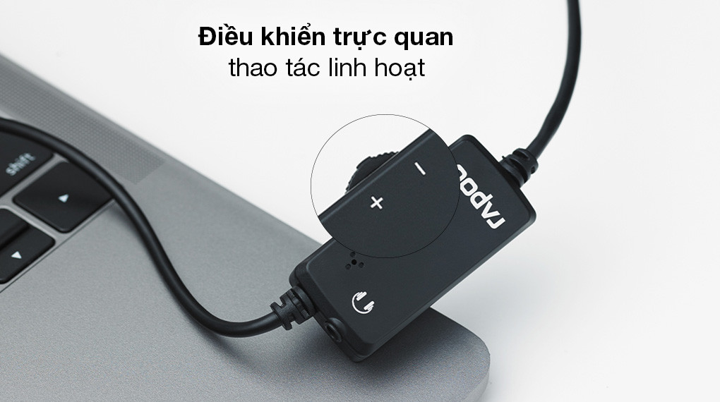 Với nút công tắc này bạn có thể chỉnh tăng/giảm âm lượng, chuyển bài hát, phát/dừng chơi nhạc linh hoạt trong khi đeo tai nghe Rapoo.