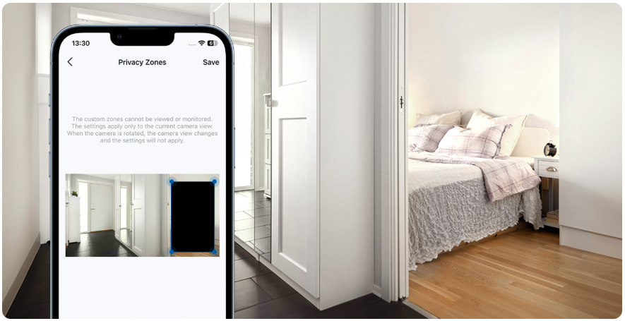 Bảo vệ quyền riêng tư của bạn bằng cách thiết lập các vùng riêng tư tùy chỉnh. Tính năng này cho phép bạn chặn ghi hình ở những khu vực nhất định trong tầm quan sát của camera, đảm bảo không gian cá nhân nhạy cảm luôn được riêng tư tuyệt đối.