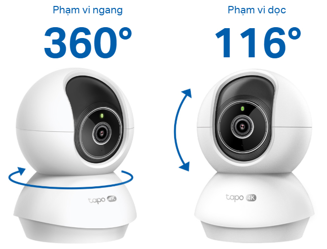 - Phạm vi quan sát rộng lớn: Tận hưởng phạm vi quay quét ngang 360º và dọc 116º đầy đủ, cho phép bạn bao phủ khu vực rộng hơn.