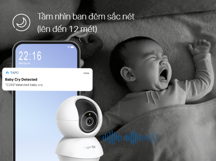 Luôn để mắt đến em bé đang ngủ với tầm nhìn IR ban đêm tiên tiến nhìn xa tới 12 mét (40 feet) trong bóng tối và tính năng phát hiện tiếng trẻ em khóc thông minh sẽ cảnh báo cho bạn ngay lập tức.