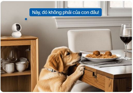 Không bao giờ bỏ lỡ một chi tiết nào với tính năng tự động theo dõi bằng AI. Camera sẽ tự động thu phóng và bám theo người hoặc thú cưng đang di chuyển, ngay cả từ khoảng cách xa.
