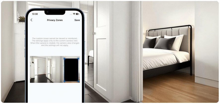 Kiểm soát quyền riêng tư của bạn bằng cách thiết lập các vùng riêng tư tùy chỉnh. Tính năng này cho phép bạn chặn ghi hình cụ thể tại các khu vực được chỉ định trong tầm nhìn của camera, đảm bảo các không gian cá nhân nhạy cảm hoàn toàn không bị giám sát và luôn riêng tư.