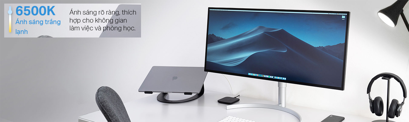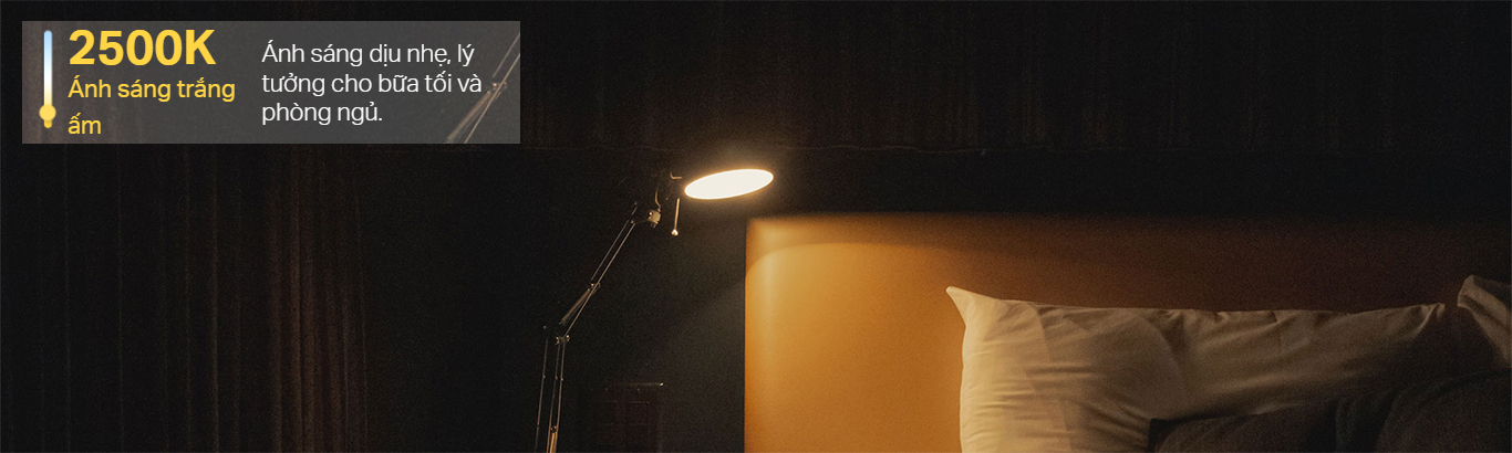 Điều chỉnh ánh sáng của bạn từ ánh sáng trắng ấm (2500K) để thư giãn vào buổi tối, hoặc ánh sáng trắng lạnh (6500K) trong giờ làm việc hoặc khi bạn cần một sự thức tỉnh vào buổi sáng.