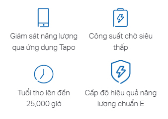 - Giám sát năng lượng – Theo dõi mức tiêu thụ điện năng theo thời gian thực và chi phí sử dụng qua ứng dụng Tapo.
