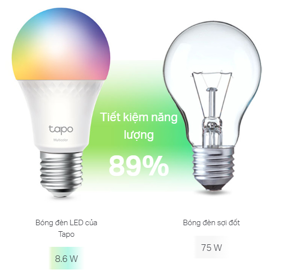 Bóng đèn Tapo L535E Thông Minh giảm mức tiêu thụ năng lượng lên đến 89% mà không làm giảm độ sáng hay chất lượng, so với bóng đèn sợi đốt 75W. Thiết kế để hoạt động hiệu quả trong nhà của bạn trong thời gian dài với mức tiêu thụ năng lượng thấp. Bạn có thể sử dụng chung với các cảm biến thông minh để khai thác tiềm năng của ngôi nhà thông minh của bạn.