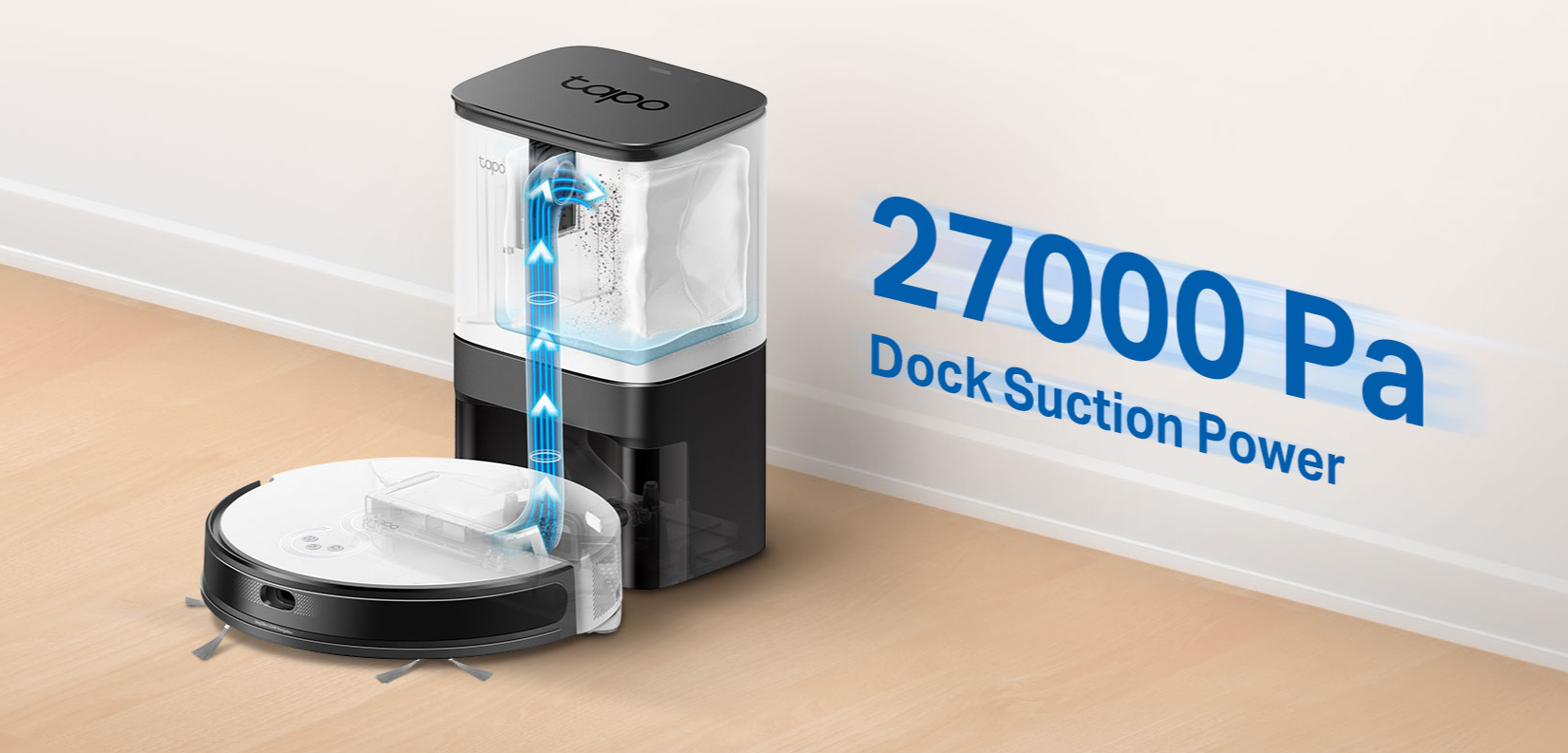 △Thử nghiệm được thực hiện bởi Phòng Thí Nghiệm Tapo sử dụng Tapo RV20 Mop Plus với lực hút tối đa 2700Pa so vớiTapo RV10 với lực hút tối đa 2000Pa. Kết quả thực tế có thể thay đổi tùy theo môi trường ở nhà.