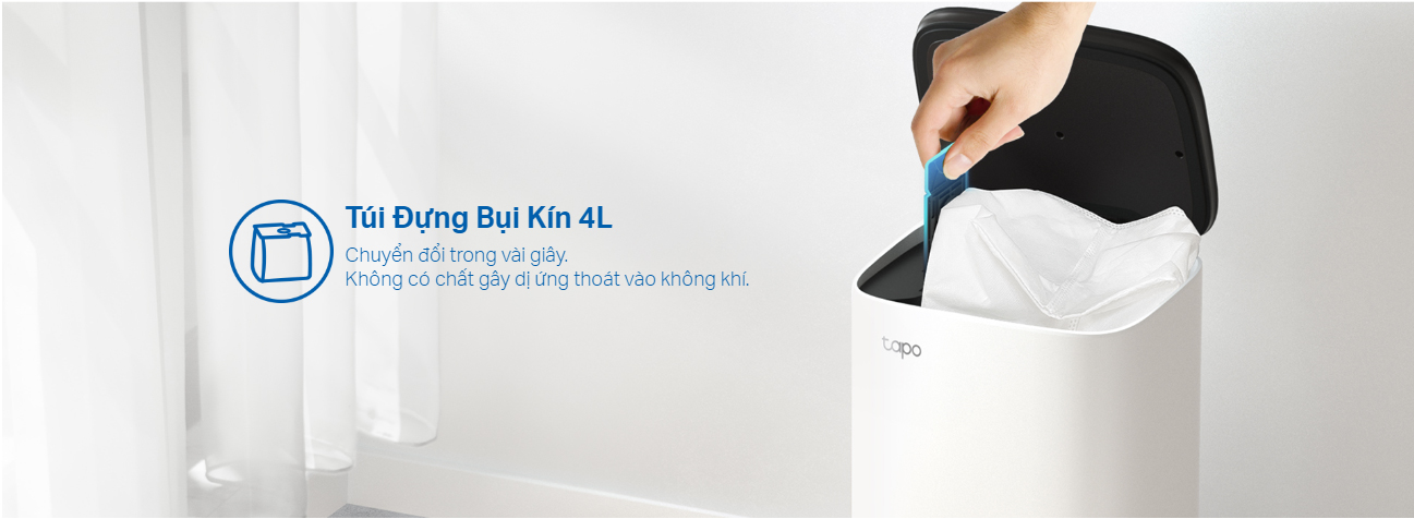 RV20 Plus tự động đổ thùng rác sau khi vệ sinh để giúp bạn rảnh tay. Bụi có thể khỏi tầm mắt tới 70 ngày với túi chứa bụi kín cực lớn 4L dùng một lần. Dễ dàng đổi túi trong vài giây sau khi hệ thống thông báo cho bạn rằng túi đã đầy. Điều này giữ cho các chất gây dị ứng luôn bị khóa lại.†