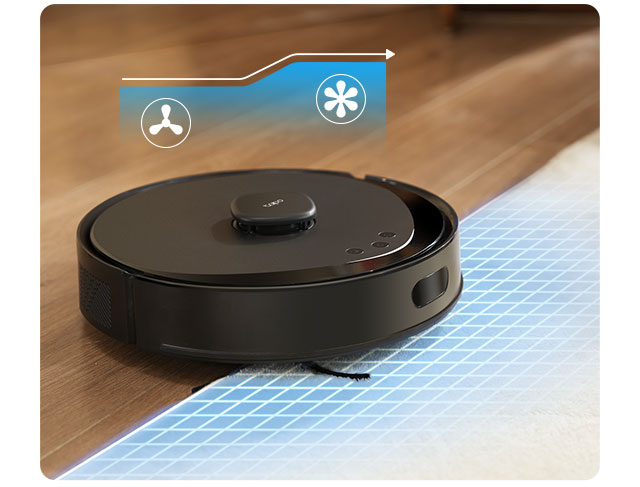 Khi chạy trên thảm, robot sẽ tăng cường lực hút để loại bỏ bụi bẩn tiềm ẩn.