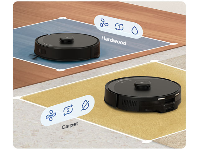Cài đặt thông minh dành riêng cho khu vực thảm giúp việc dọn dẹp nhanh chóng và dễ dàng.