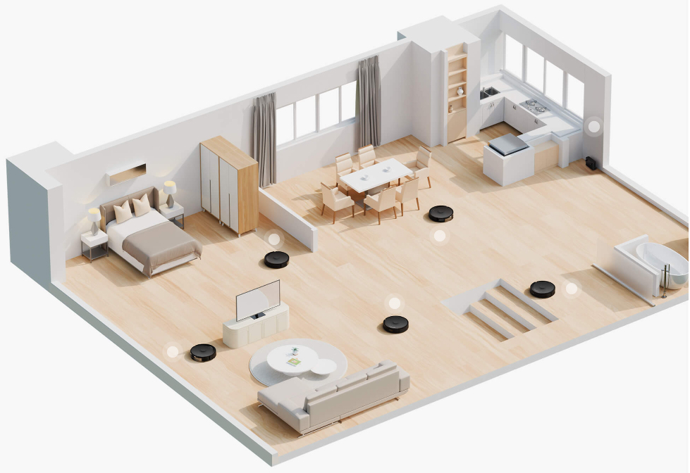 Phát hiện chính xác các tầng khác nhau và tạo bản đồ lưu trữ cục bộ 3+1 nhiều tầng để hình thành góc nhìn toàn cảnh ngôi nhà của bạn.