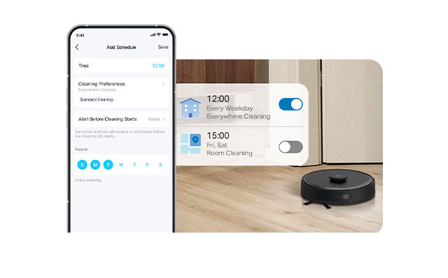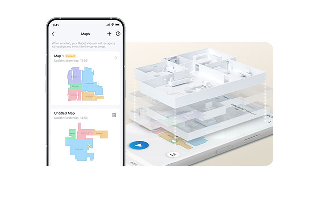 Chỉ định phòng cần vệ sinh với độ sâu và quy trình vệ sinh có thể tùy chỉnh, điều khiển robot hút bụi chính xác đến nơi bạn muốn tập trung.