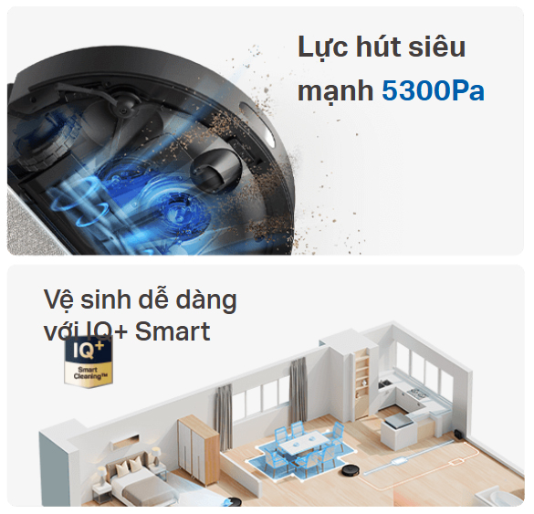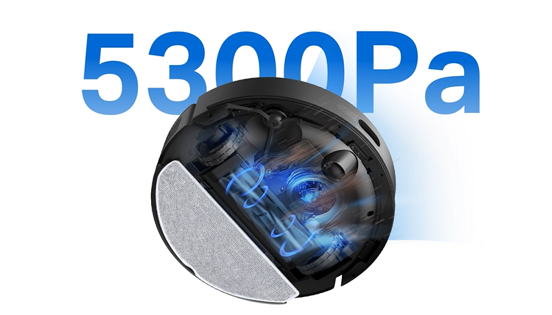- Lực hút siêu mạnh 5300Pa - Đảm bảo robot có thể hút sạch bụi, lông thú cưng, vụn bánh mì và nhiều mảnh vụn khác trên mọi bề mặt sàn, giúp ngôi nhà của bạn luôn sạch sẽ.