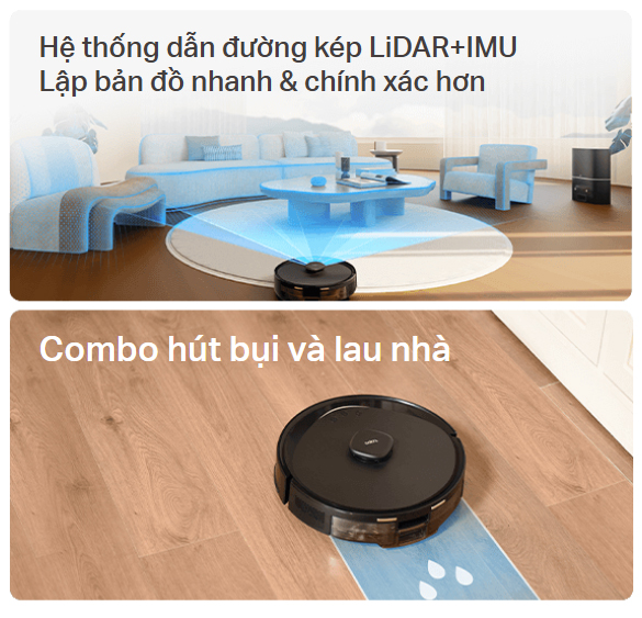 - Hệ thống dẫn đường kép LiDAR+IMU - Lập bản đồ chính xác ngôi nhà của bạn chỉ trong vài phút, tránh bỏ sót và phải vệ sinh nhiều lần, thậm chí hoạt động tốt trong bóng tối.