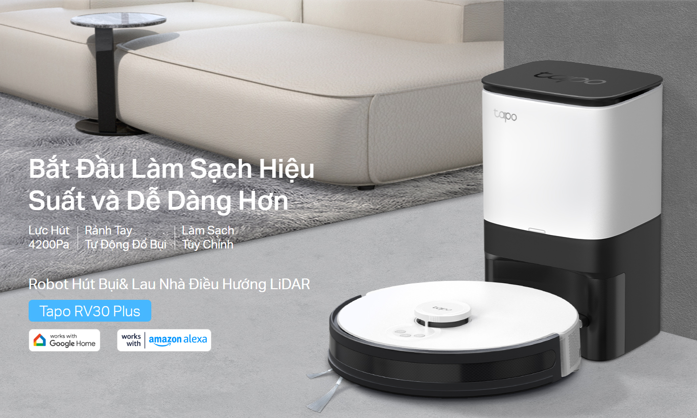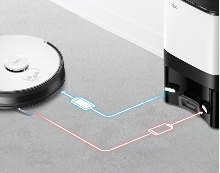 Tapo RV30 Plus cung cấp 5 giờ liên tục dọn dẹp toàn bộ ngôi nhà sau mỗi lần sạc đầy. Robot tự động quay trở lại đế sạc khi pin yếu và sau đó khởi động lại ngay tại vị trí đã dừng.