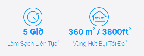 3. Dựa trên thử nghiệm nội bộ do nhà sản xuất thực hiện, sử dụng chế độ hút bụi yên tĩnh khi pin đầy. Kết quả thực tế có thể thay đổi tùy theo tình trạng làm việc và môi trường gia đình.