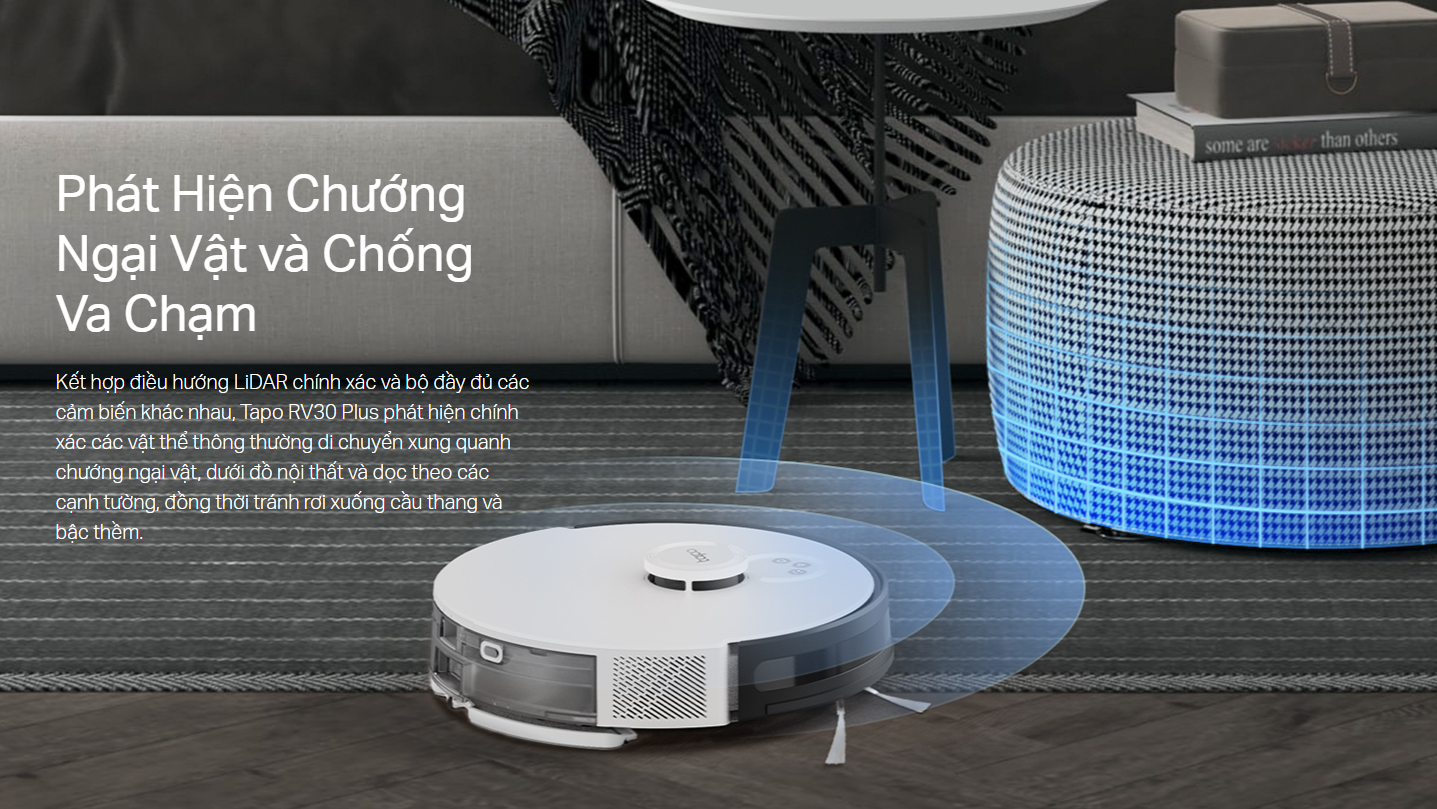 Kết hợp điều hướng LiDAR chính xác và bộ đầy đủ các cảm biến khác nhau, Tapo RV30 Plus phát hiện chính xác các vật thể thông thường di chuyển xung quanh chướng ngại vật, dưới đồ nội thất và dọc theo các cạnh tường, đồng thời tránh rơi xuống cầu thang và bậc thềm.