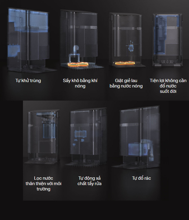 - Tự động dọn dẹp hoàn toàn không cần can thiệp - Công nghệ đột phá đảm bảo hiệu suất hoàn hảo mà không cần đổ đầy nước, xử lý nước thải dễ dàng và bảo trì tối thiểu.
