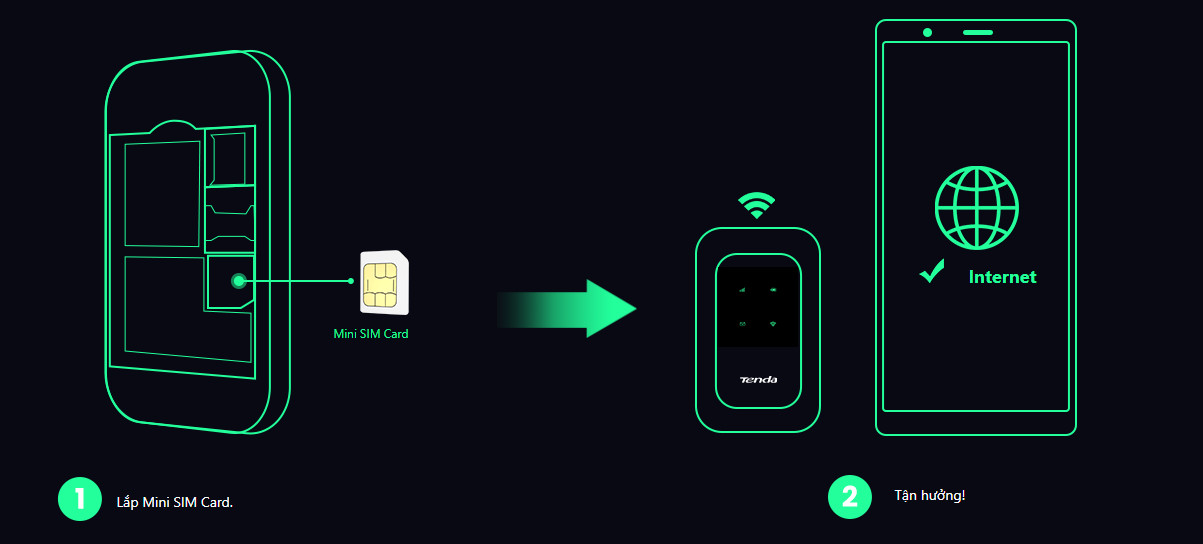 Tạo điển truy cập Wi-Fi và chia sẻ kết nối lên đến 10 thiết bị như Smartphone, Máy tính bảng, đồng hồ thông minh, ...