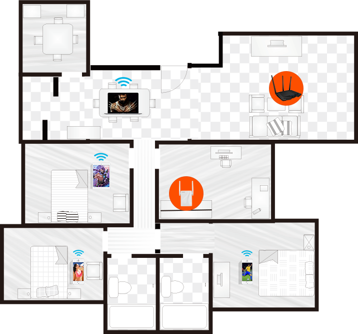 Các Router WiFi AC5 với băng tần 5GHz sẽ xuyên tường kém, dẫn đến sóng 5GHz không thể phủ sóng rộng trong nhà. Tenda A18 với khả năng Repeater sóng WiFi 5GHz, tốc độ tối ta 867Mbps, sẽ giúp phủ sóng WiFi 5GHz tốc độ cao cho toàn bộ ngôi nhà của bạn.