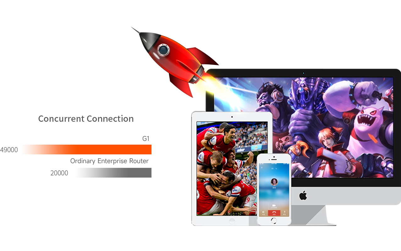 Bộ định tuyến có dây doanh nghiệp G1 được trang bị mô-đun NAT nhanh hiệu suất cao. Kết nối đồng thời lên tới 49000, số lượng thiết bị được kết nối tối đa là 150 và chúng tôi khuyên bạn nên kết nối 100 thiết bị. Nhiều người có thể truy cập internet mà không bị trễ. Trong khi đó, nó hỗ trợ băng thông rộng 1000Mbps, dễ dàng xử lý phát trực tuyến video HD, trò chơi trực tuyến, nhà thông minh, hội nghị truyền hình và các nhu cầu mạng chính thống khác. Tận hưởng mạng cực đại gigabit mọi lúc.