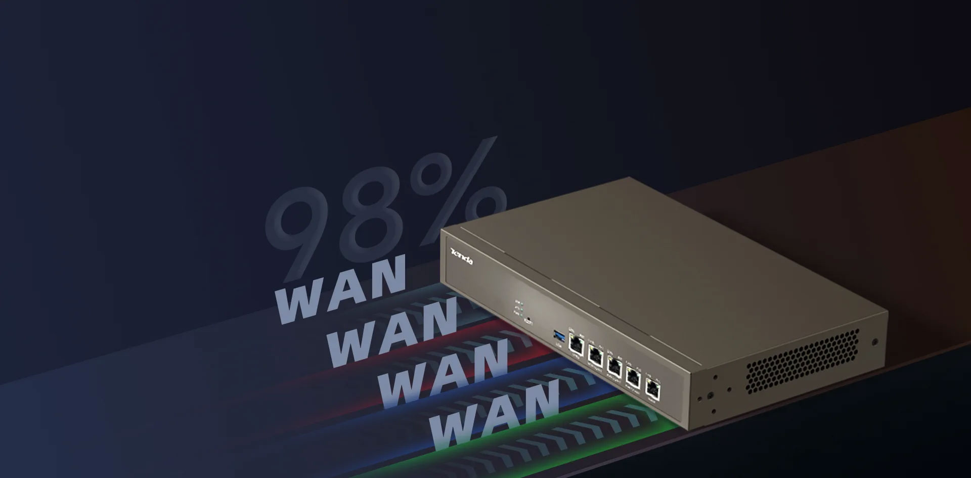 Hỗ trợ tối đa 4 cổng WAN, 4 đường băng thông rộng có thể kết nối đồng thời và thực hiện chồng băng thông. Hỗ trợ các chức năng lựa chọn đường dẫn thông minh, cân bằng lưu lượng tự động, cân bằng lưu lượng tùy chỉnh và nhiều chức năng khác. Tận dụng tối đa tài nguyên băng thông và thực hiện hiệu quả chồng băng thông trên 98%.