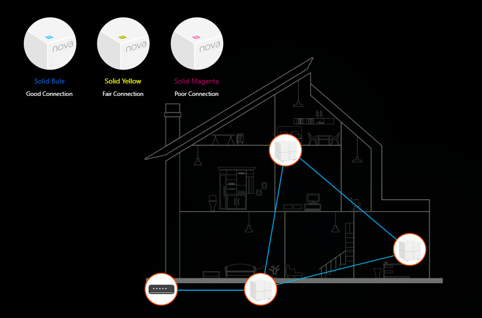Hệ thống WiFi truyền thống không thể tự kết nối lại khi tín hiệu bị mất. Nhưng với Tenda Nova MW6 - Home Mesh WiFi, nếu một node bị ngắt kết nối, nó sẽ tự tìm kiếm và thiết lập kết nối với node khác, giúp duy trì hệ thống mạng của bạn. ì nó sẽ tự động duy trì trạng thái mạng của nó. Vì vậy, nếu một nova bị ngắt kết nối nó sẽ kết nối lại với một nova có sẵn để đảm bảo duy trì kết nối.