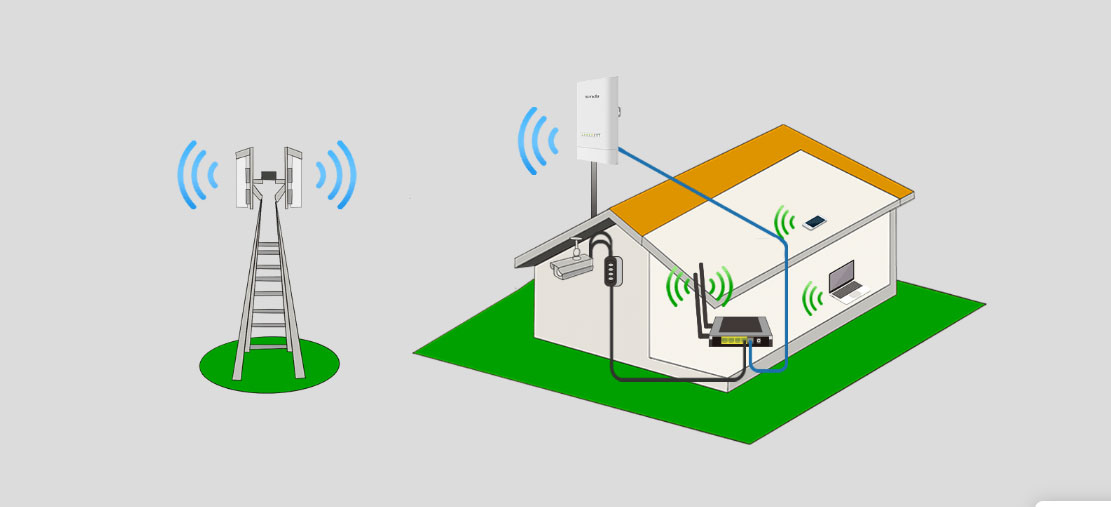 Kết nối không dây với tín hiệu tháp ISP riêng để chia sẻ Internet với mạng không dây và có dây cục bộ.