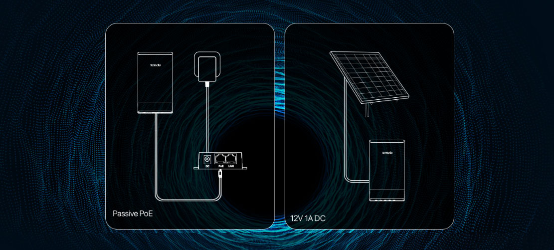 OS3 hỗ trợ tùy chọn nguồn điện PoE thụ động 12V 1A và nguồn điện DC 12V 1A. Giúp kỹ sư triển khai thiết bị một cách linh hoạt.